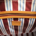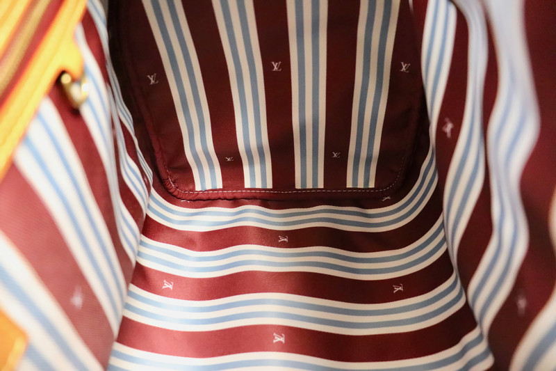 •  Interior: Burgundy and light blue striped textile lining with LV logos