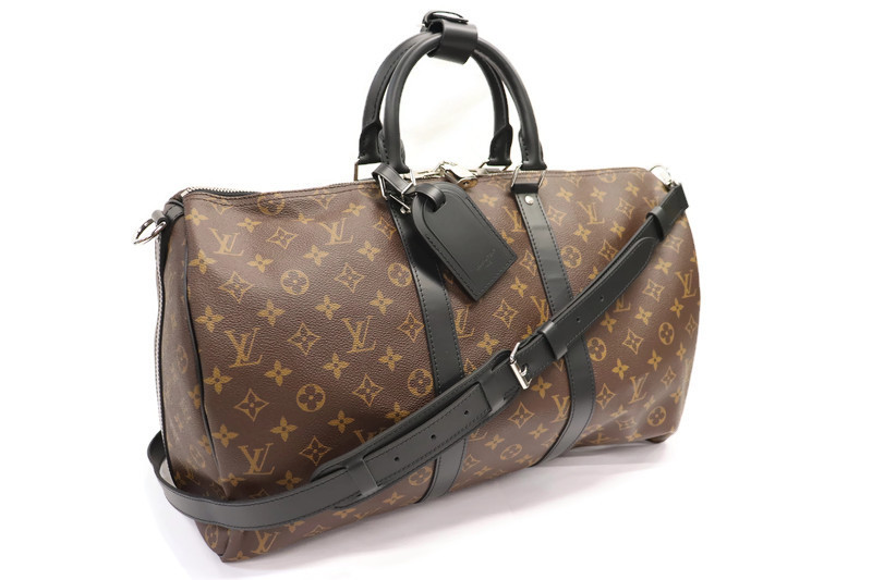 Iconic Louis Vuitton Keepall Bandoulière 45 in classic Monogram Macassar canvas, paired with rich black leather trim for a bold, modern look. This versatile duffel bridges everyday luxury and effortless travel style- equally perfect for business trips or weekend getaways.