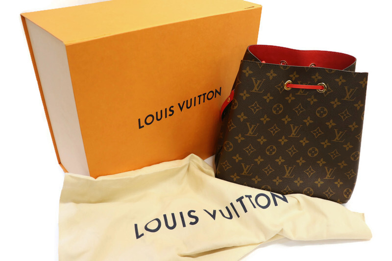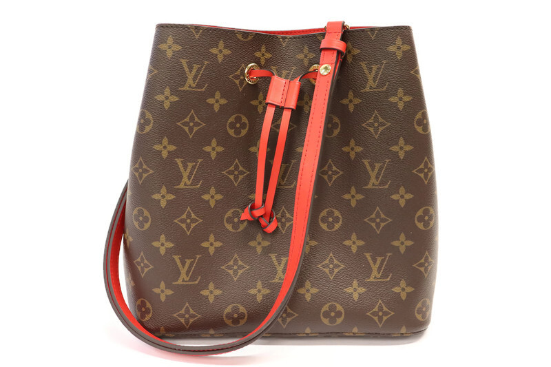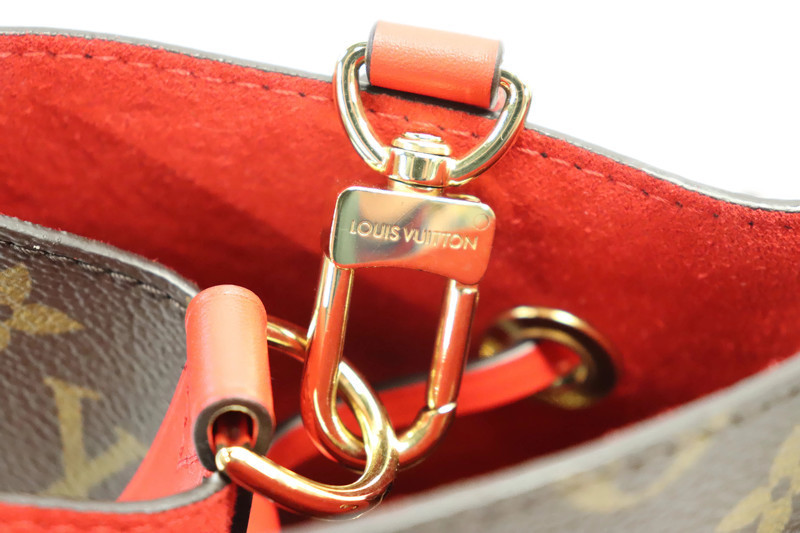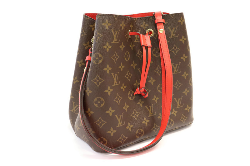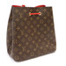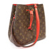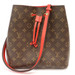 Modern Louis Vuitton chic- Monogram Neo Noé with bold red leather accents.