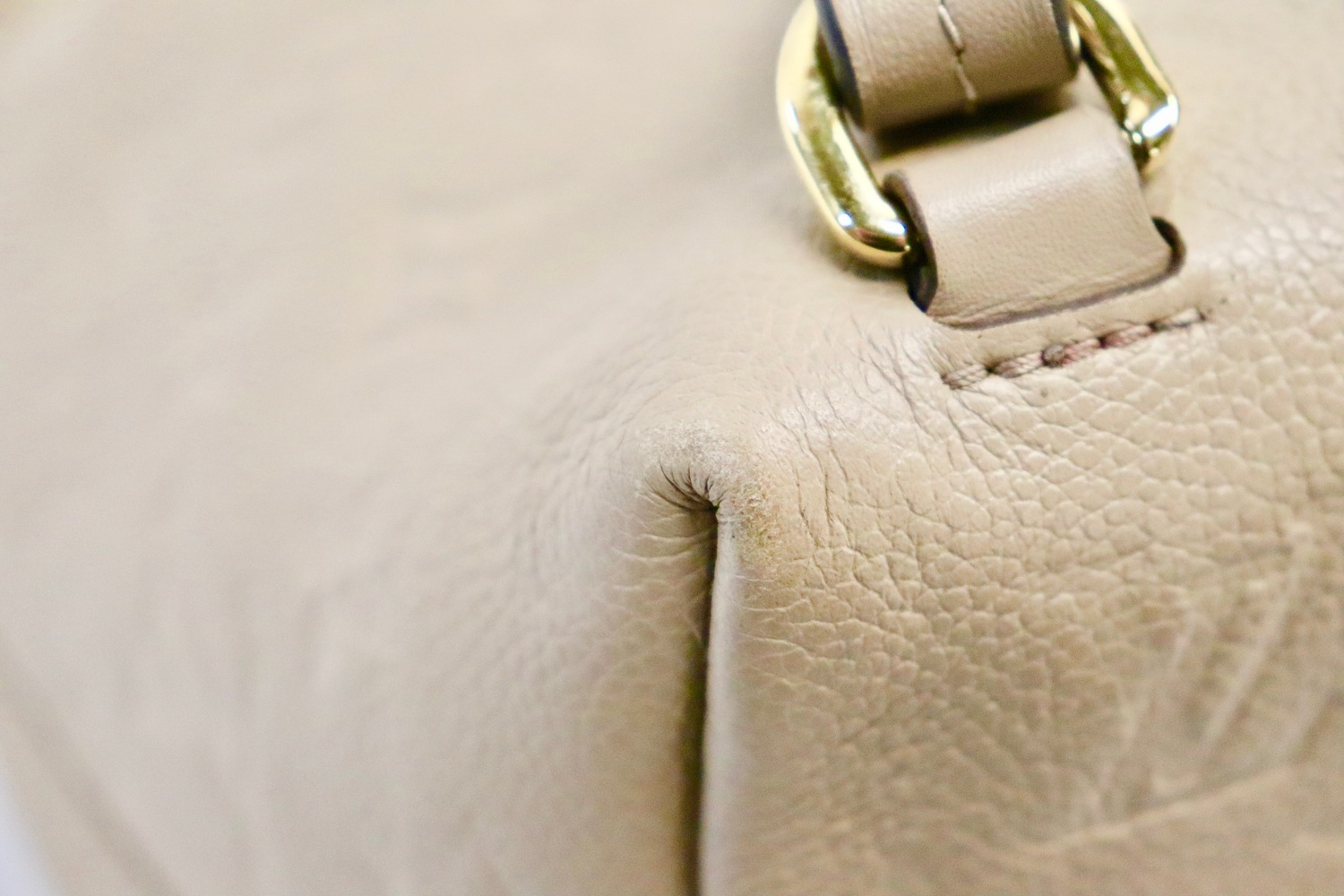 • Empreinte leather shows minor scuffs (notably on the front zipper pocket flap area and the front flap)