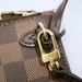 The matching Damier Ebene pouch is included and shows moderate cosmetic wear consistent with use.