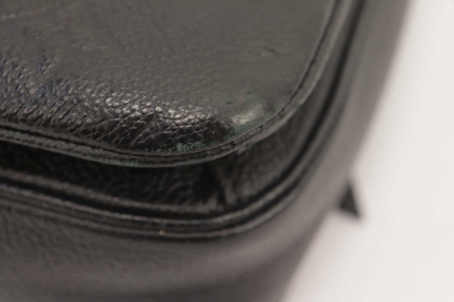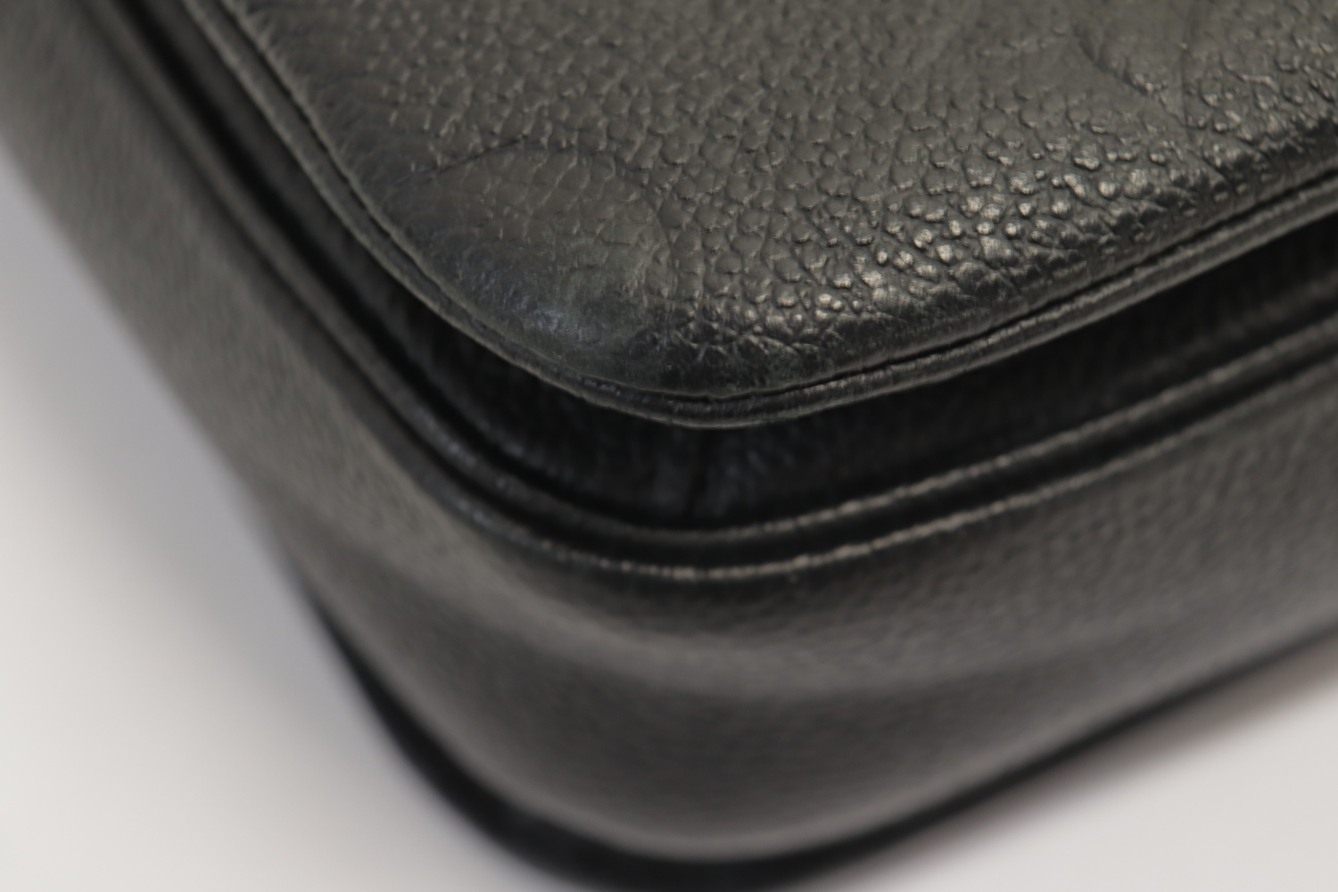 Bag is in very good pre-owned condition with minor wear from normal use. Corners show light rubbing, hardware retains its shine with typical micro-scratching, and interior compartments show light spotting/staining but no debris or odors. Structure is firm, leather is supple, and the piece presents beautifully- clean, elegant, and ready to carry.