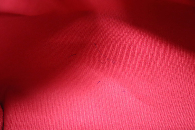 •  Interior: Pink textile lining clean and fresh; Ink pen markings; no stains or odor