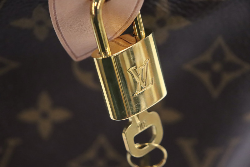 This bag is in excellent pre-owned condition, showing only light signs of handling. The leather is pale and smooth, with minor surface marks on the top of the handles. The Monogram canvas is pristine, corners are clean, and the interior is spotless. All hardware shines beautifully. Includes original box, dust bag, product tag, paperwork, and Entrupy Certificate of Authenticity.