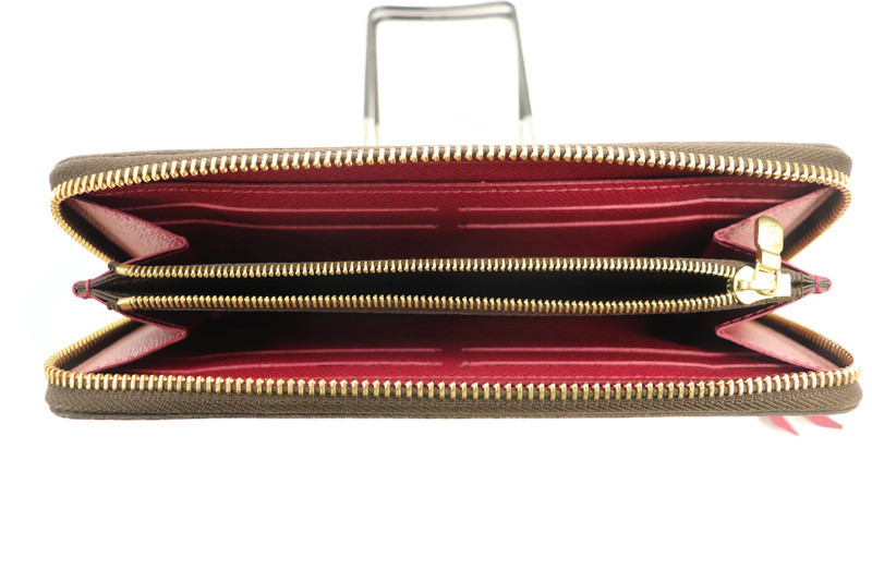 This authentic Louis Vuitton Zippy Wallet Clemence (Model M60742) features the classic Monogram coated canvas exterior paired with a vibrant fuchsia leather interior. It’s the perfect blend of functionality and style, offering ample space for cards, bills, and coins in a sleek, secure zip-around design.