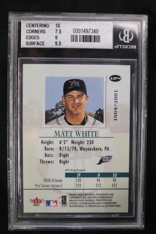 Offered here is a 2001 Fleer #124 Matt White Rookie baseball card that has been professionally graded and encapsulated by Beckett.