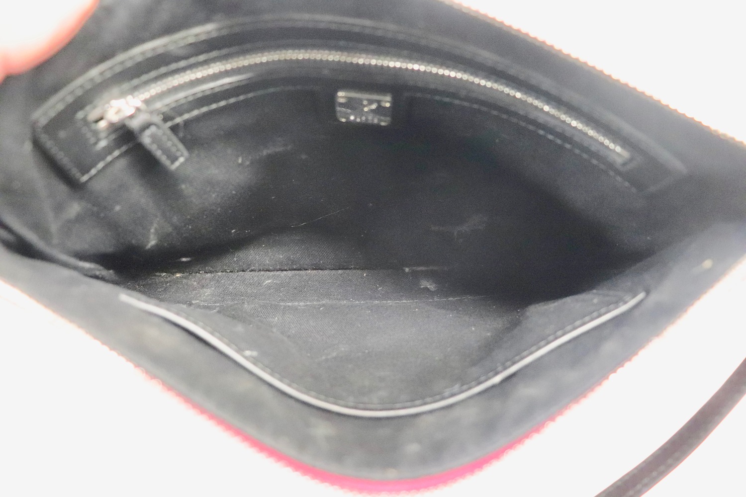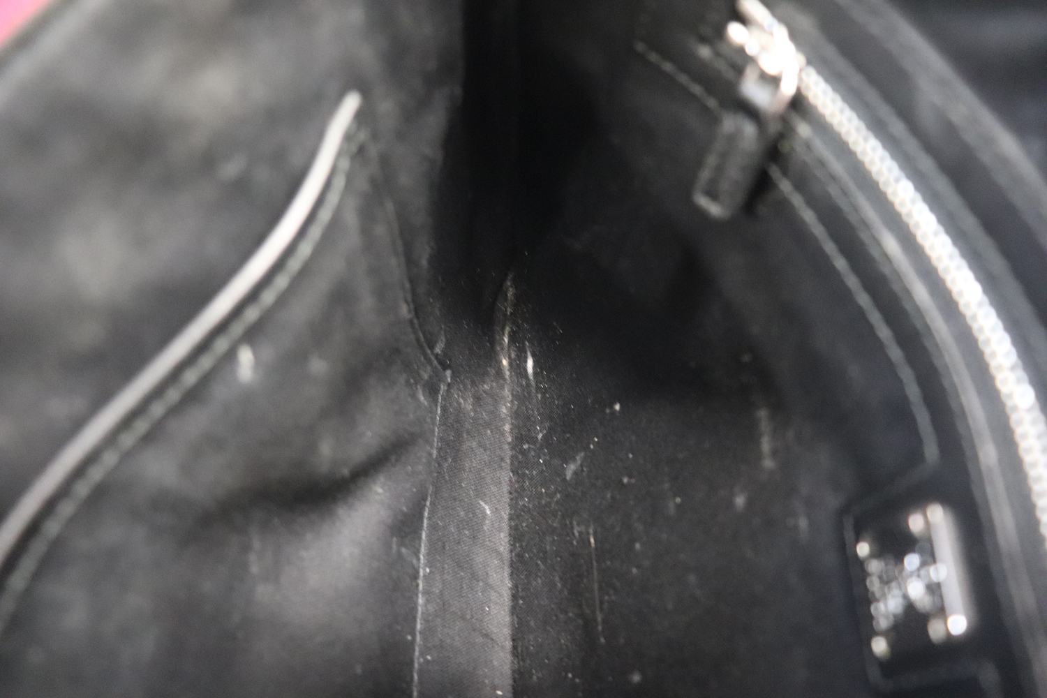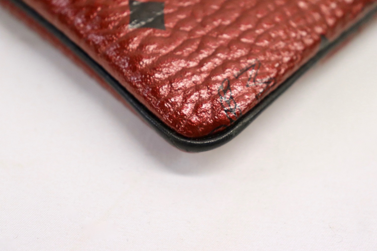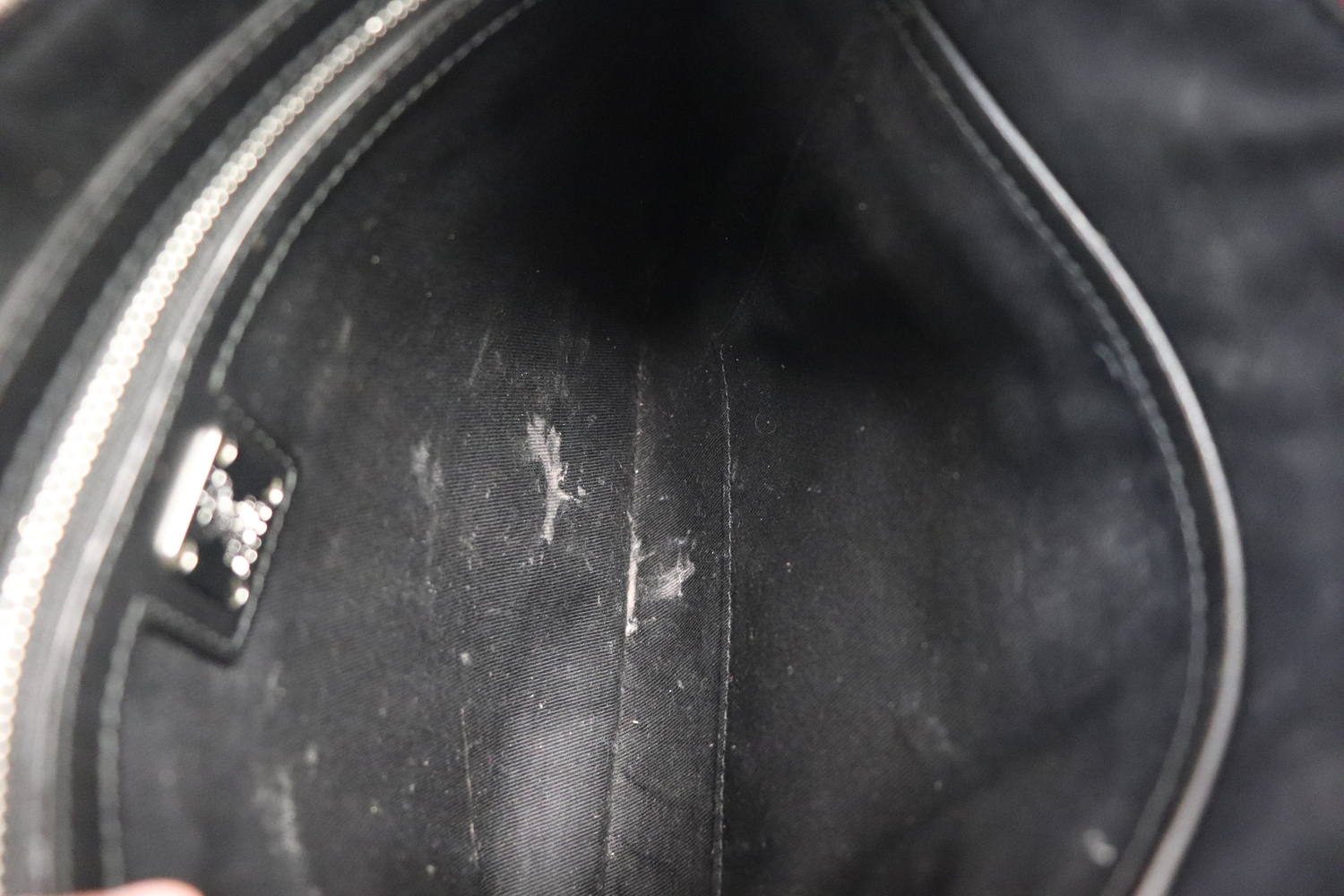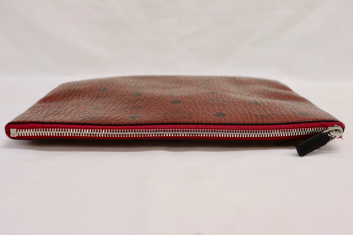 This MCM Medium Visetos Crossbody Pouch in metallic red brings that “luxury gift but also extremely practical” vibe. It’s sleek, statement-y, and surprisingly roomy for a flat pouch. Exterior is crisp and clean with no visible wear. Interior does show some spotting and minor dust/debris collection, but no odors, and nothing that affects use.