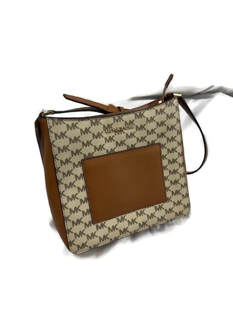 Michael Kors Signature GLORIA Pocket Swing Pack Crossbody Tan & Brown NEW: