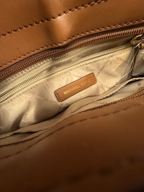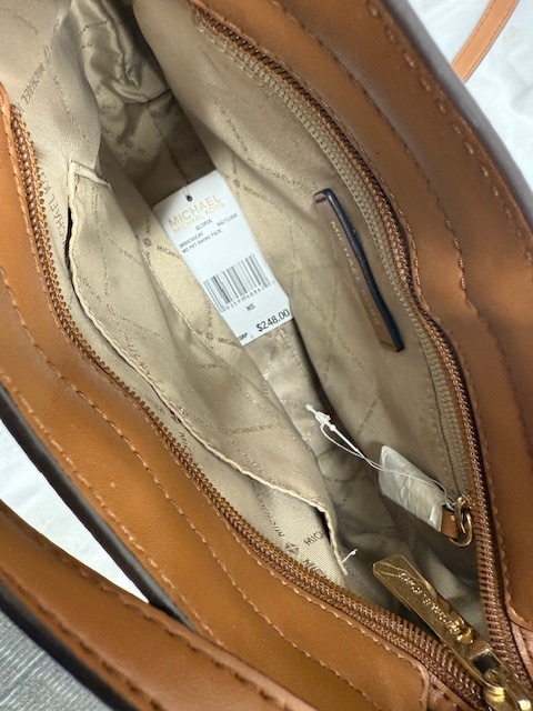 Michael Kors Gloria Pocket Swing Pack Crossbody in a timeless Tan & Brown combo. Retains its original tags. Great condition, offers elegance and added functionality. Ideal for daily use or special occasions.