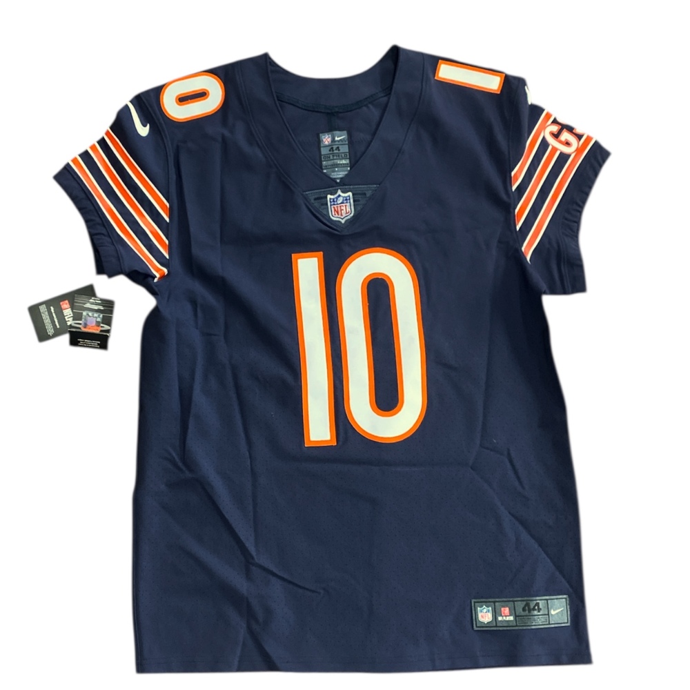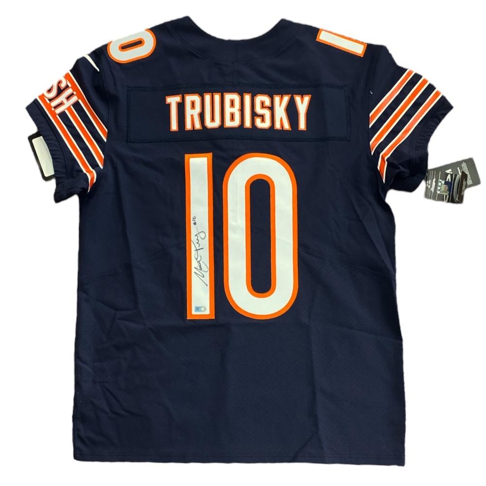Up for sale is a Nike On Field jersey autographed by Mitch Trubisky, former first-round pick and quarterback in the NFL. This is an officially licensed Nike On Field jersey, size 44, featuring stitched details and high-quality construction the same style worn by players on game day.