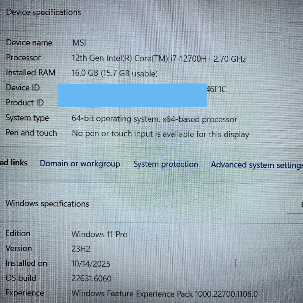 Processor: Intel Core i7-12700H (14-core, 20-thread)