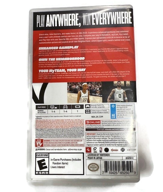This pre-owned NBA 2K25 Nintendo Switch video game is still in great working condition. It comes with its original case for safe storage. Experience the thrill of your favorite basketball franchise right in your hands. Perfect for sports and gaming enthusiasts.=