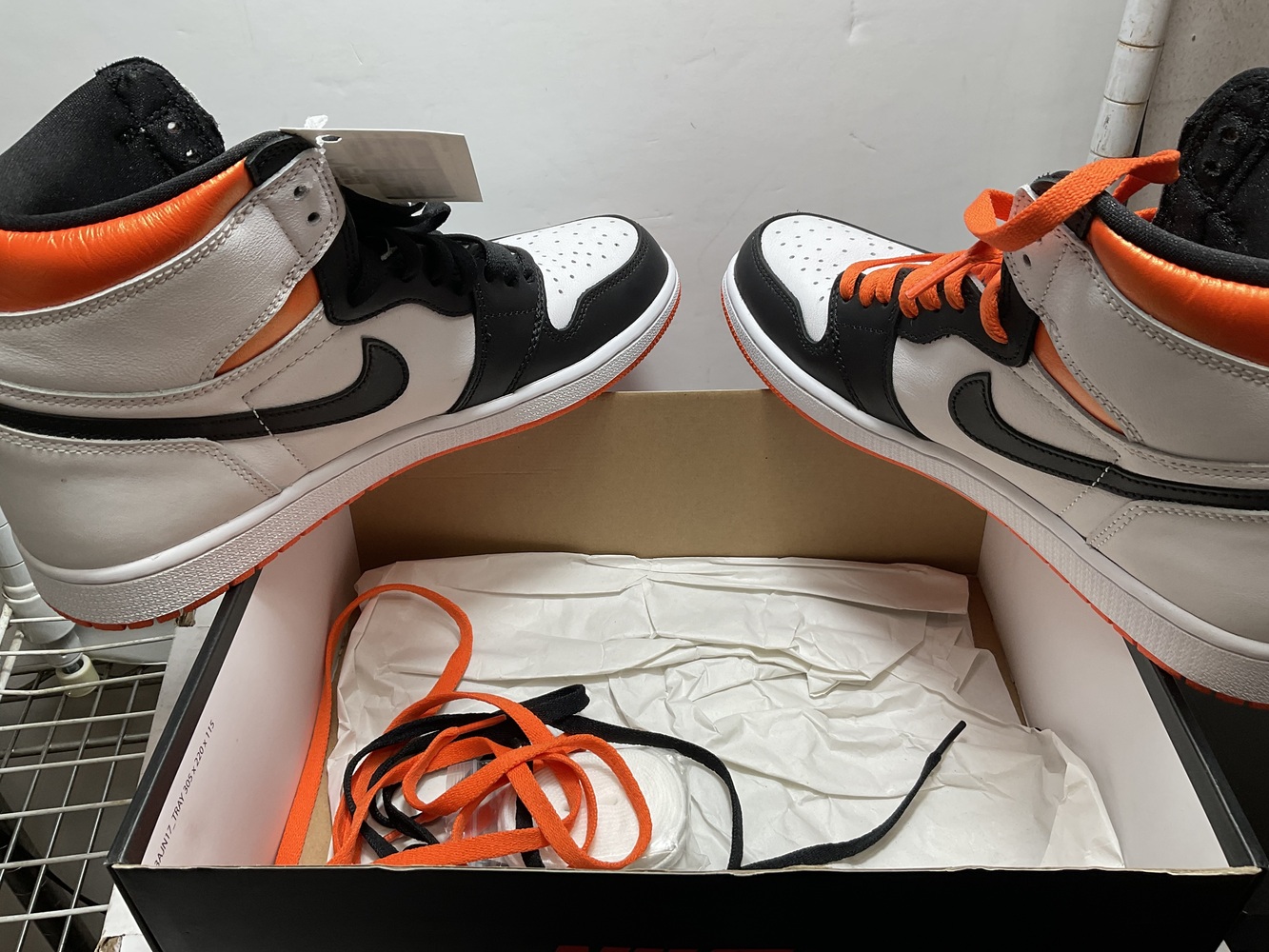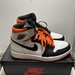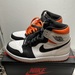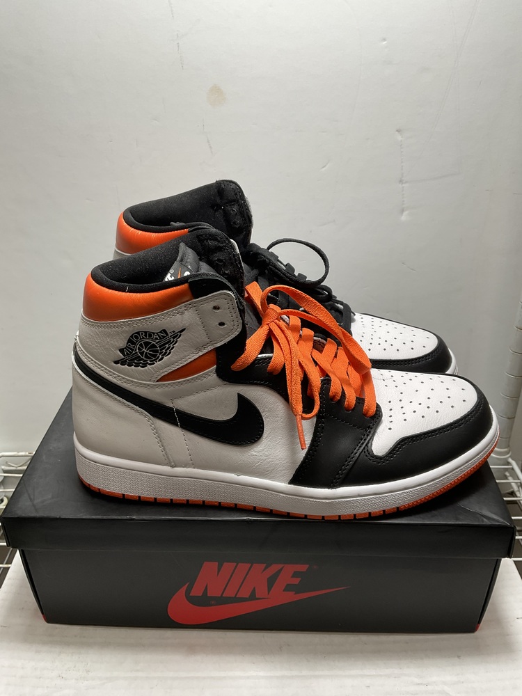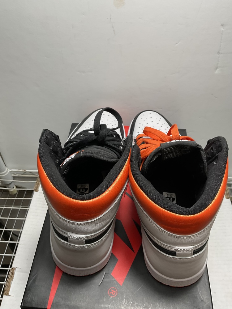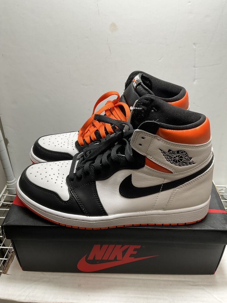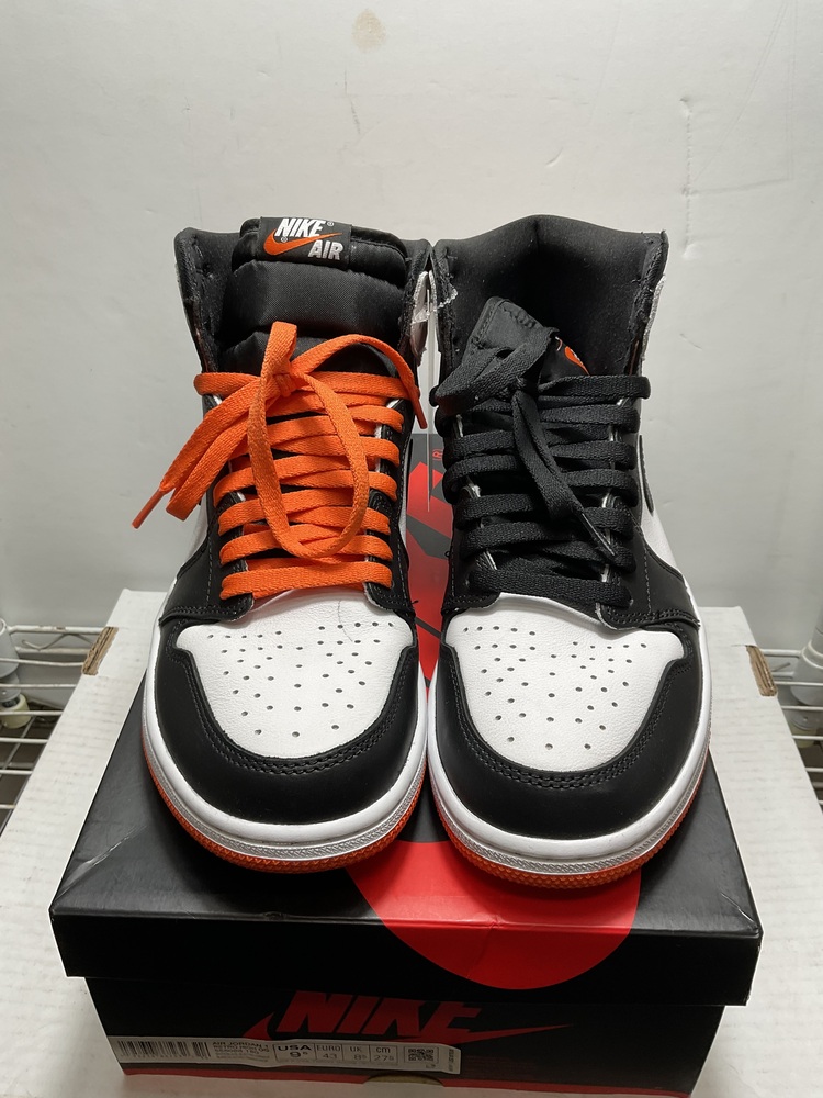 Step into style with the exclusive Nike Air Jordan 1 Retro High OG! It’s a symphony in white, black and electric orange, a brand-new design in the original box. Comes with extra laces and ultra-cool in size 9.5. Elevate your shoe game to legendary heights!