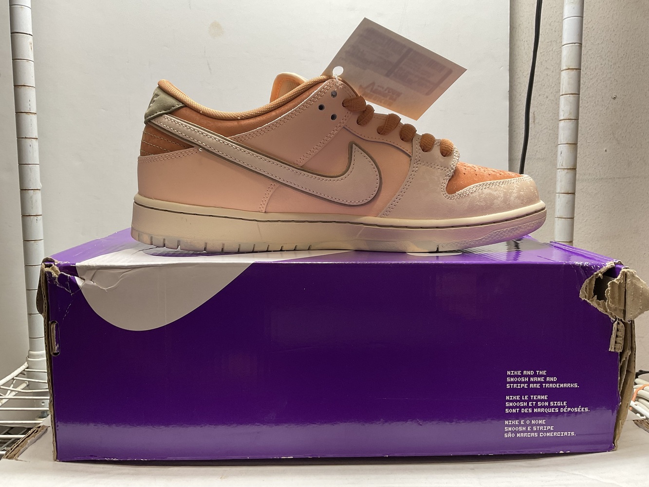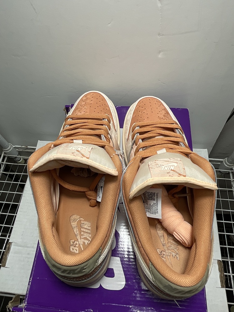 Get your groove on with these Nike SB Dunk Lows! Sporting an earthy Amber Brown and vibrant Guava Ice, these size 10.5 sneakers are perfect for style and performance. Despite a slightly damaged box, they promise top-notch comfort and a hip look. Get yours now before they're snapped up!