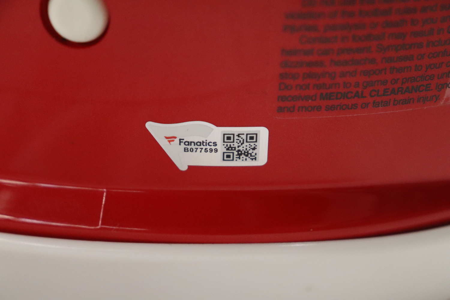 • Fanatics Authentications hologram affixed to helmet