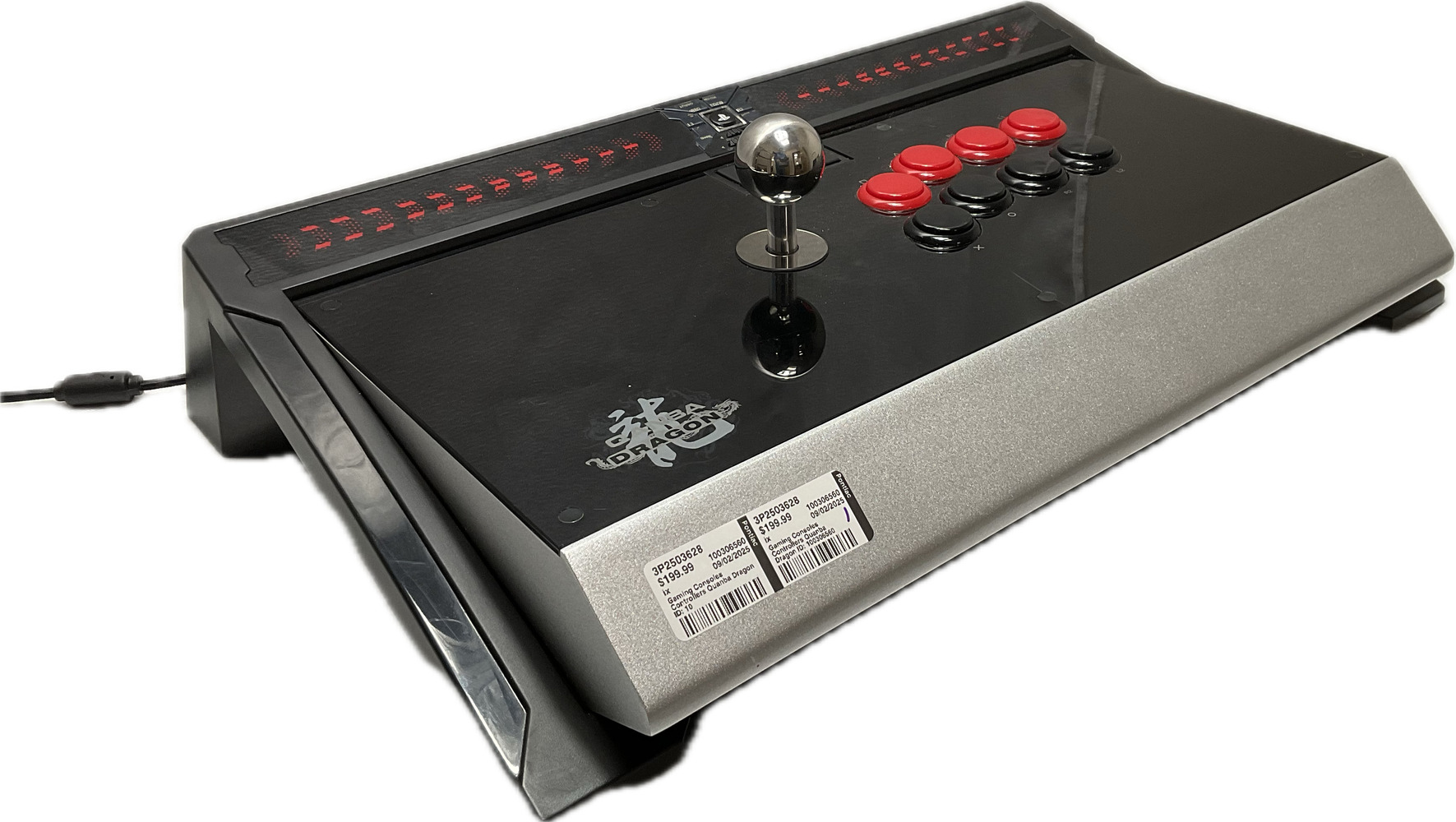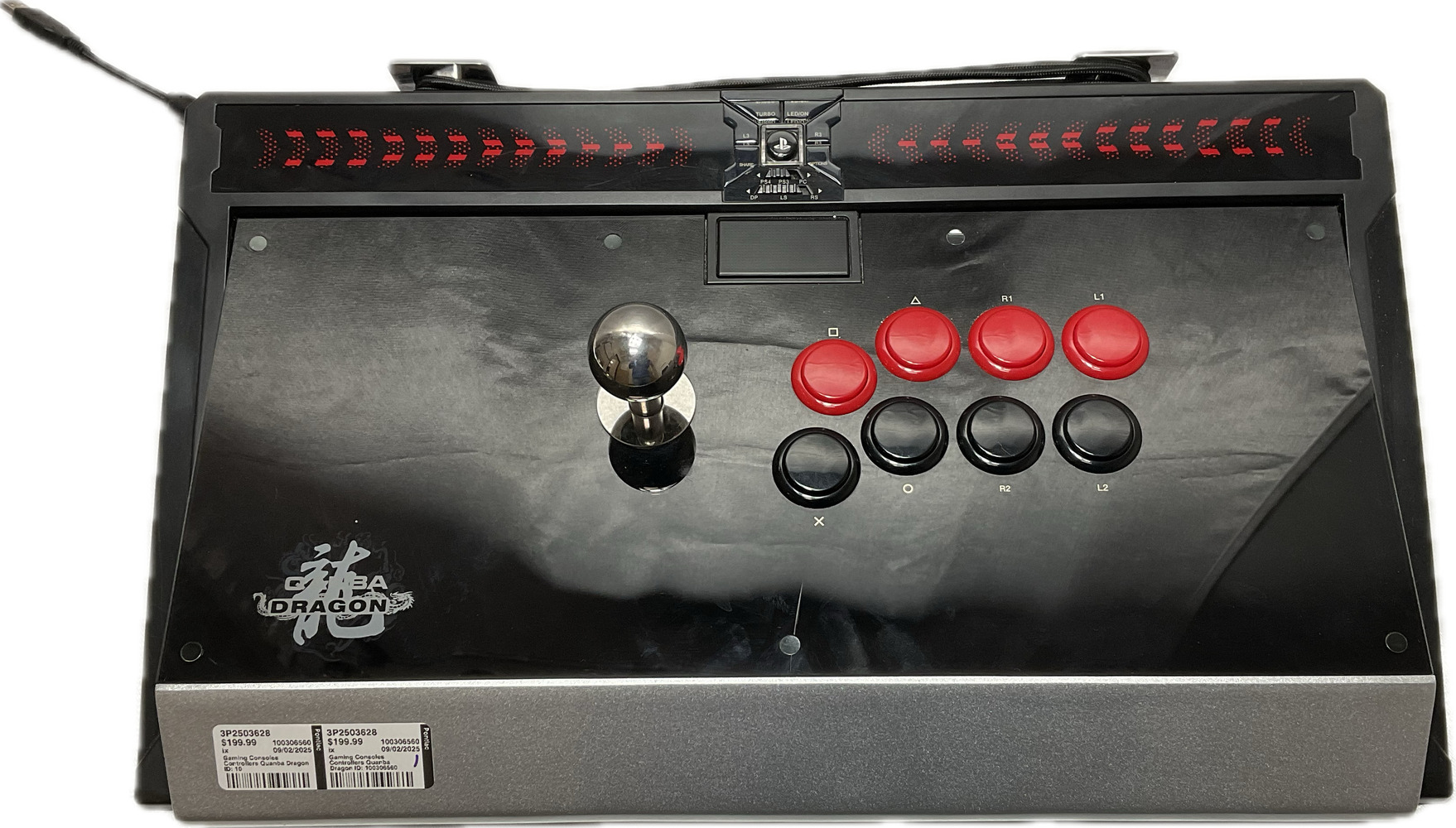Quanba Dragon Fighting Stick for PlayStation, model ID: 100306560. Features responsive arcade-grade Sanwa buttons and joystick, durable build, and wired USB connectivity. Compatible with PS3/PS4/PC. Excellent condition with original cord included. Ideal for precise input in fighting games and competitive play.