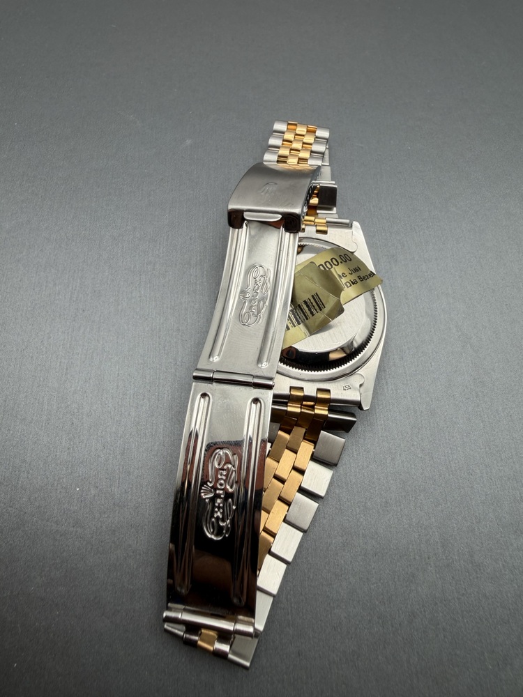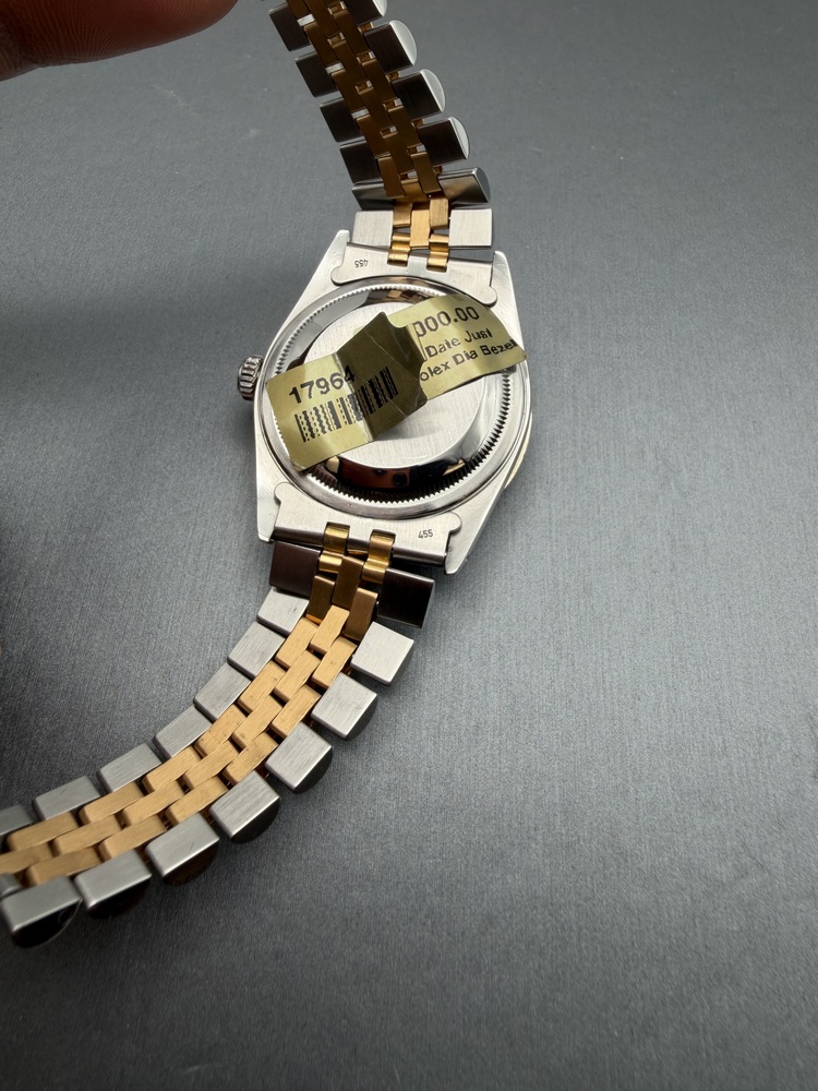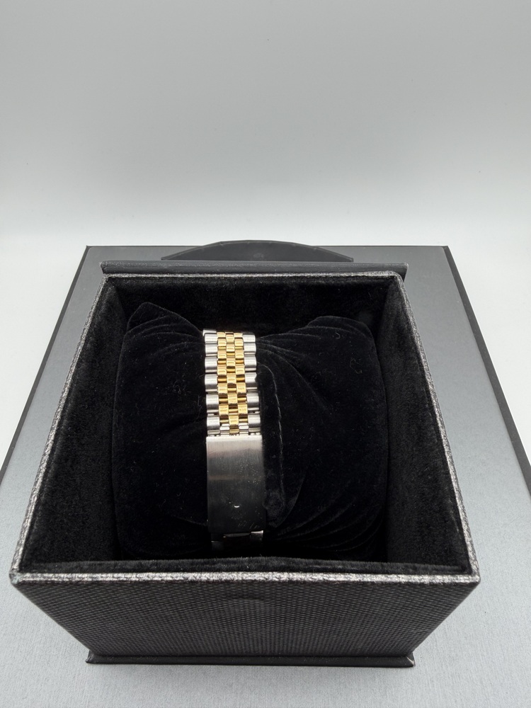 Selling an authentic Rolex Oyster Perpetual Datejust two-tone wristwatch featuring a classic gold and stainless steel design.