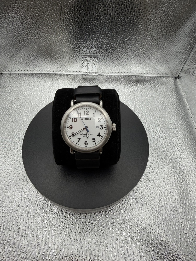 Shinola Detroit Argonite-705 Quartz Watch White Dial Date Black Leather Strap