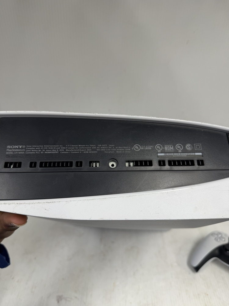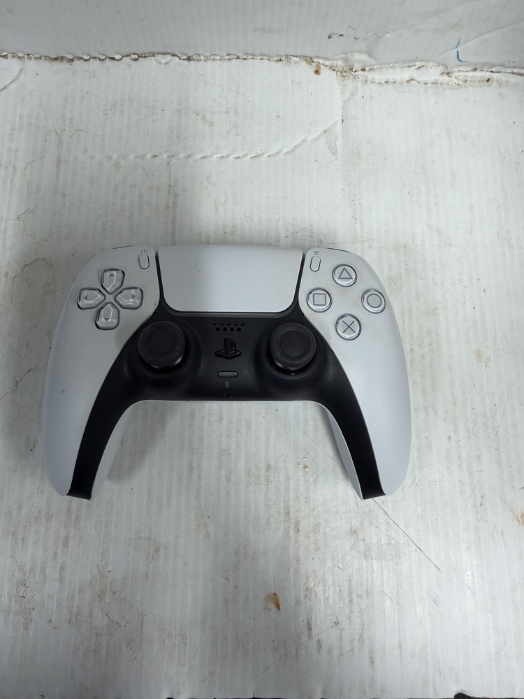 Sony PlayStation 5 console in good working condition. This listing includes the PS5 console, one official DualSense wireless controller, HDMI cable, and power cord—everything needed to plug in and play. Console has been tested and works as intended. Minor cosmetic wear only; no impact on performance. Please review all photos for exact condition.