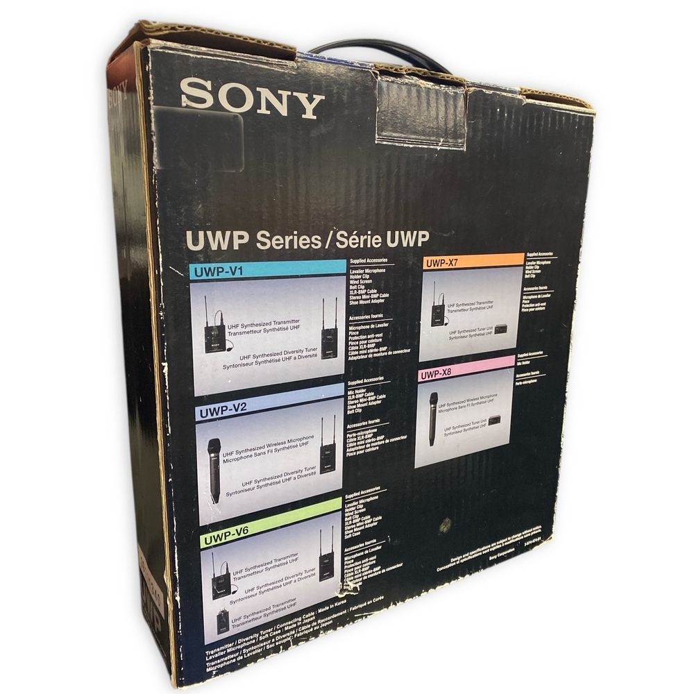 This listing is for a Sony UWP-V6 Wireless Microphone Kit, a professional dual-channel wireless audio solution designed for video production, broadcasting, interviews, and field recording. The UWP-V6 system allows simultaneous use of a lavalier microphone system and a handheld microphone transmitter, making it ideal for run-and-gun, documentary, and ENG-style workflows.