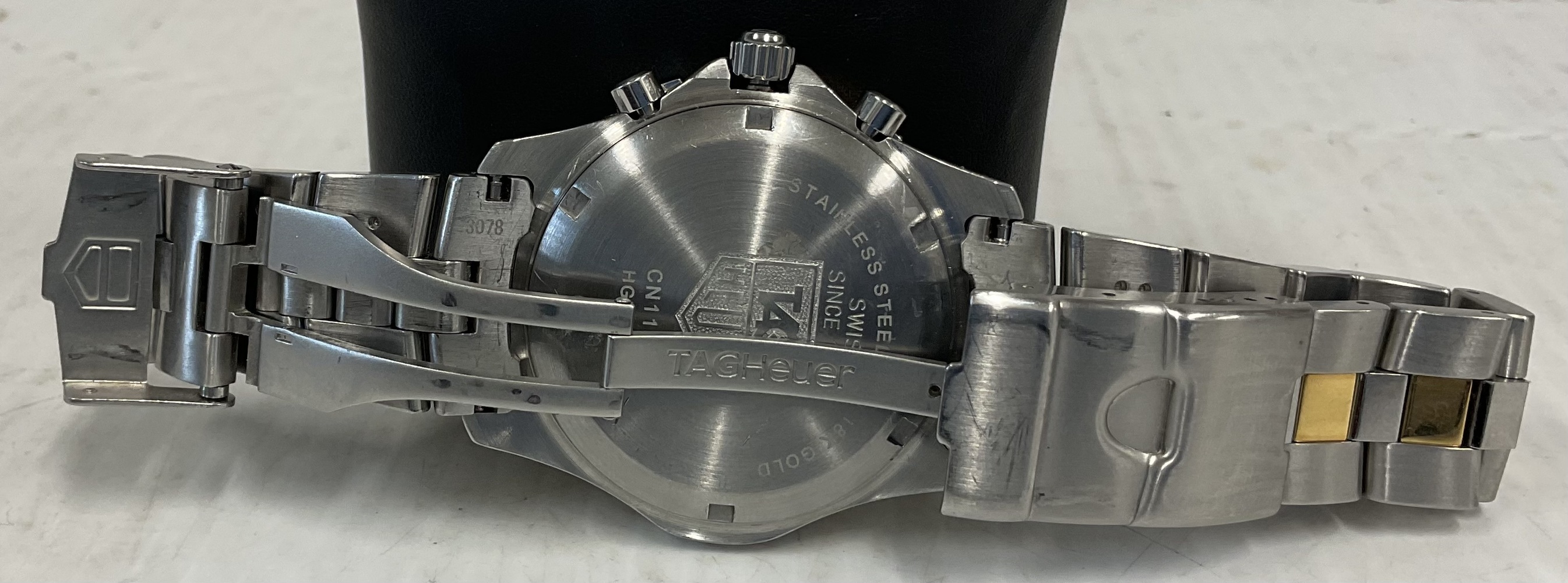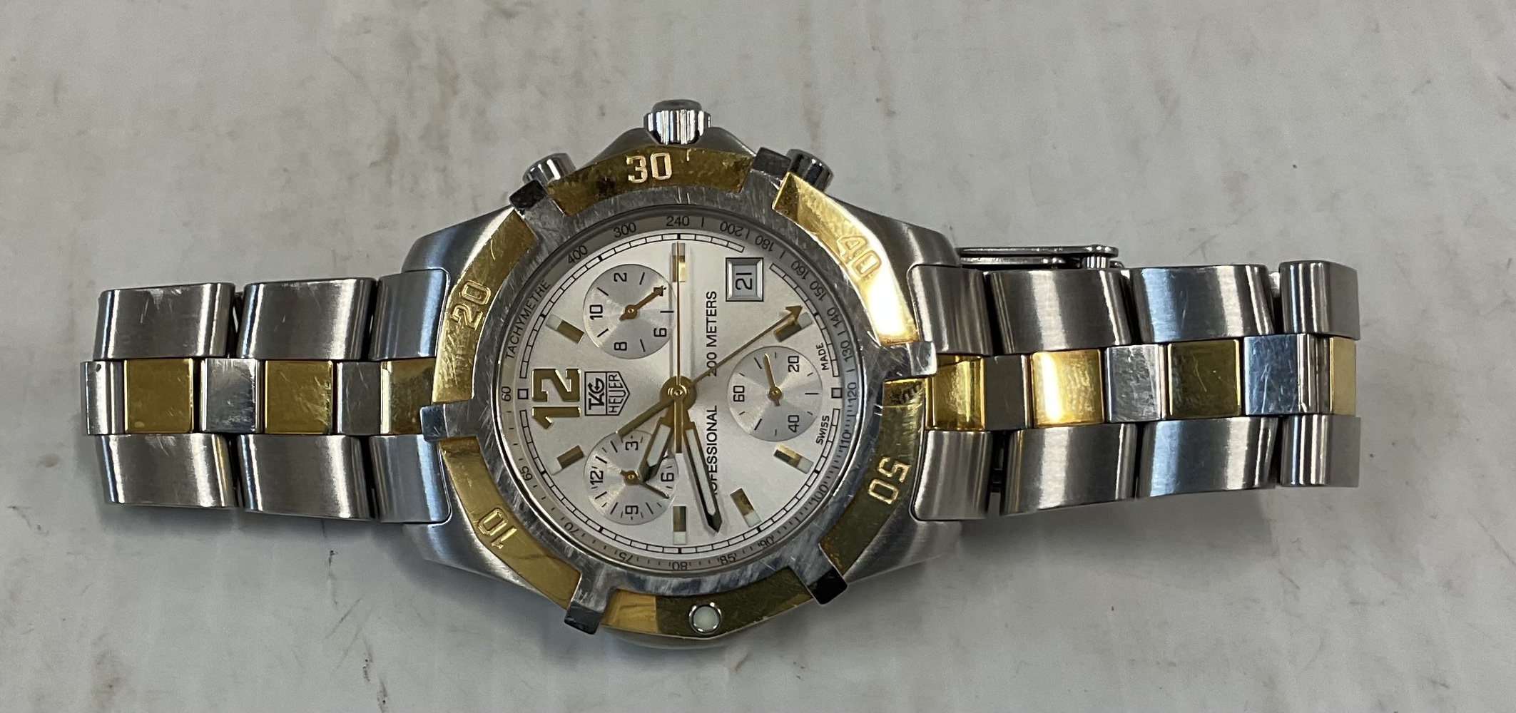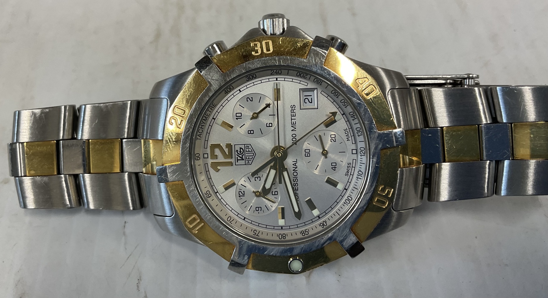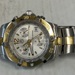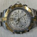 Dial: Silver dial with gold stick hour markers, three silver chronograph.