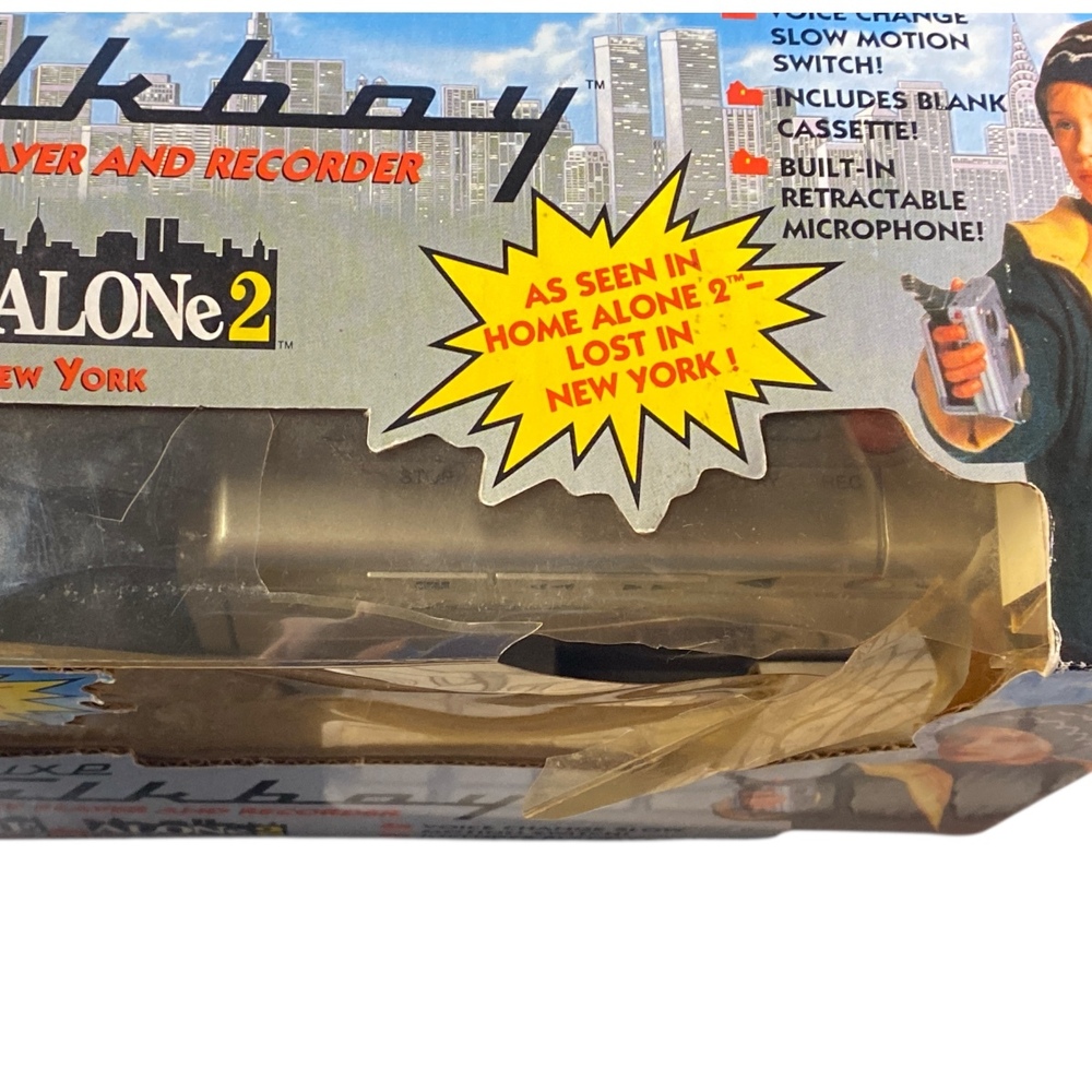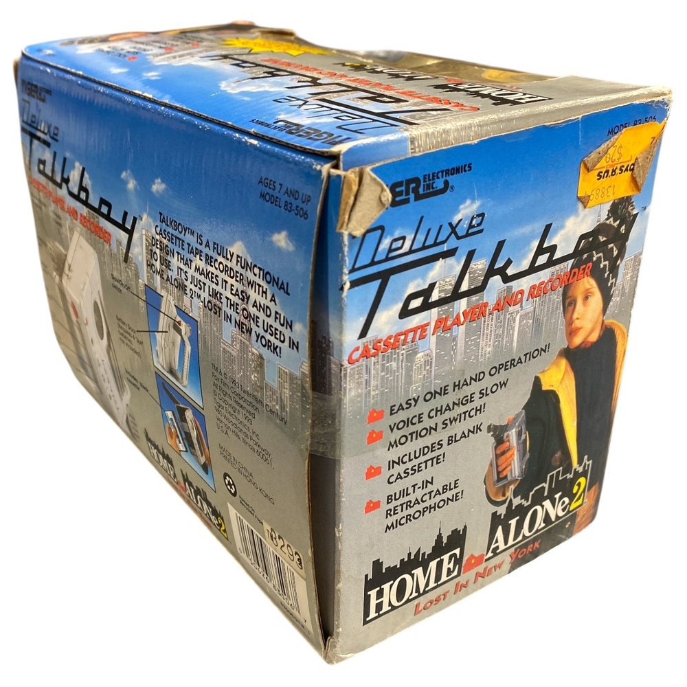 This listing is for a Tiger Electronics Deluxe Talkboy cassette recorder, new in the original box and still factory sealed with the original tape seal intact. This is the classic Talkboy made famous by the Home Alone films and is a highly sought-after collectible.