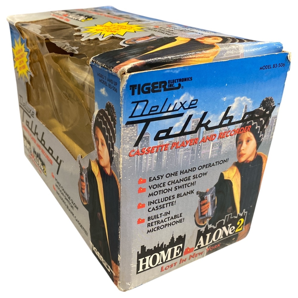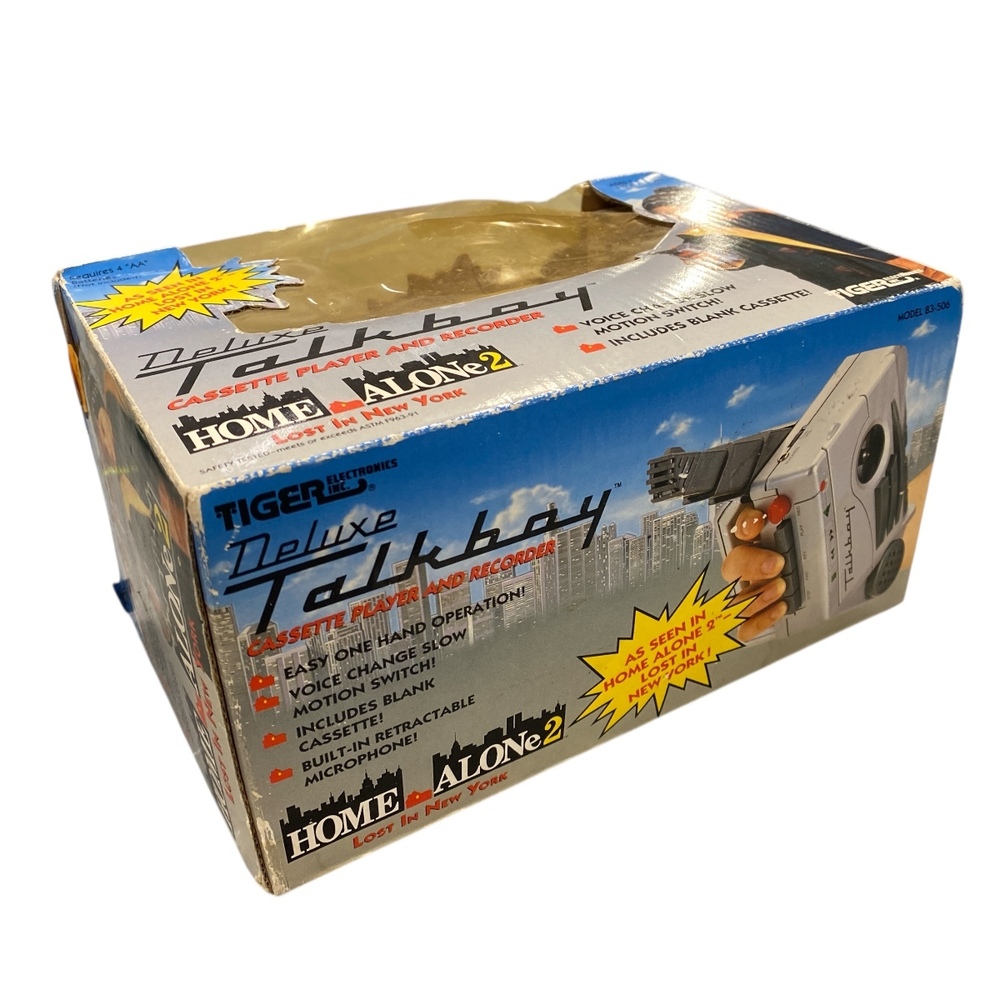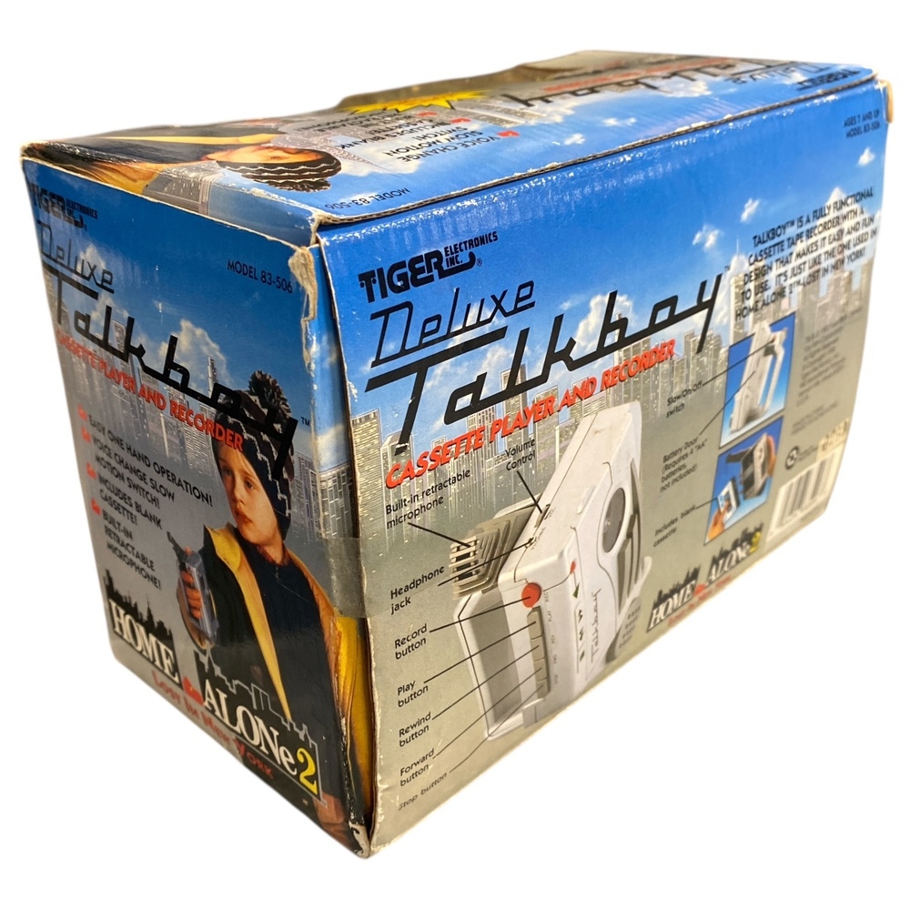 This listing is for a Tiger Electronics Deluxe Talkboy cassette recorder, new in the original box and still factory sealed with the original tape seal intact. This is the classic Talkboy made famous by the Home Alone films and is a highly sought-after collectible.