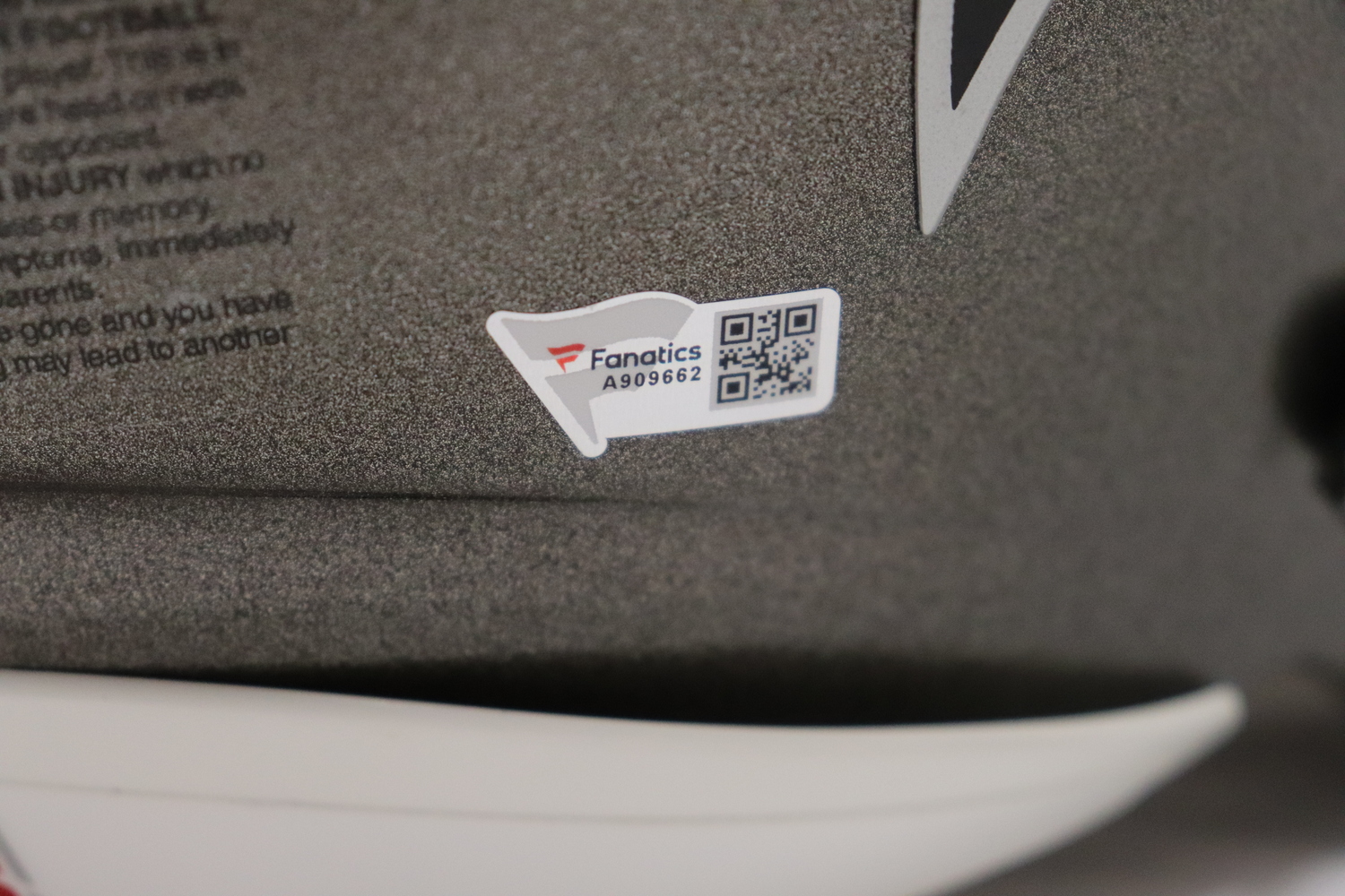 • Fanatics hologram authentication (sticker on helmet)