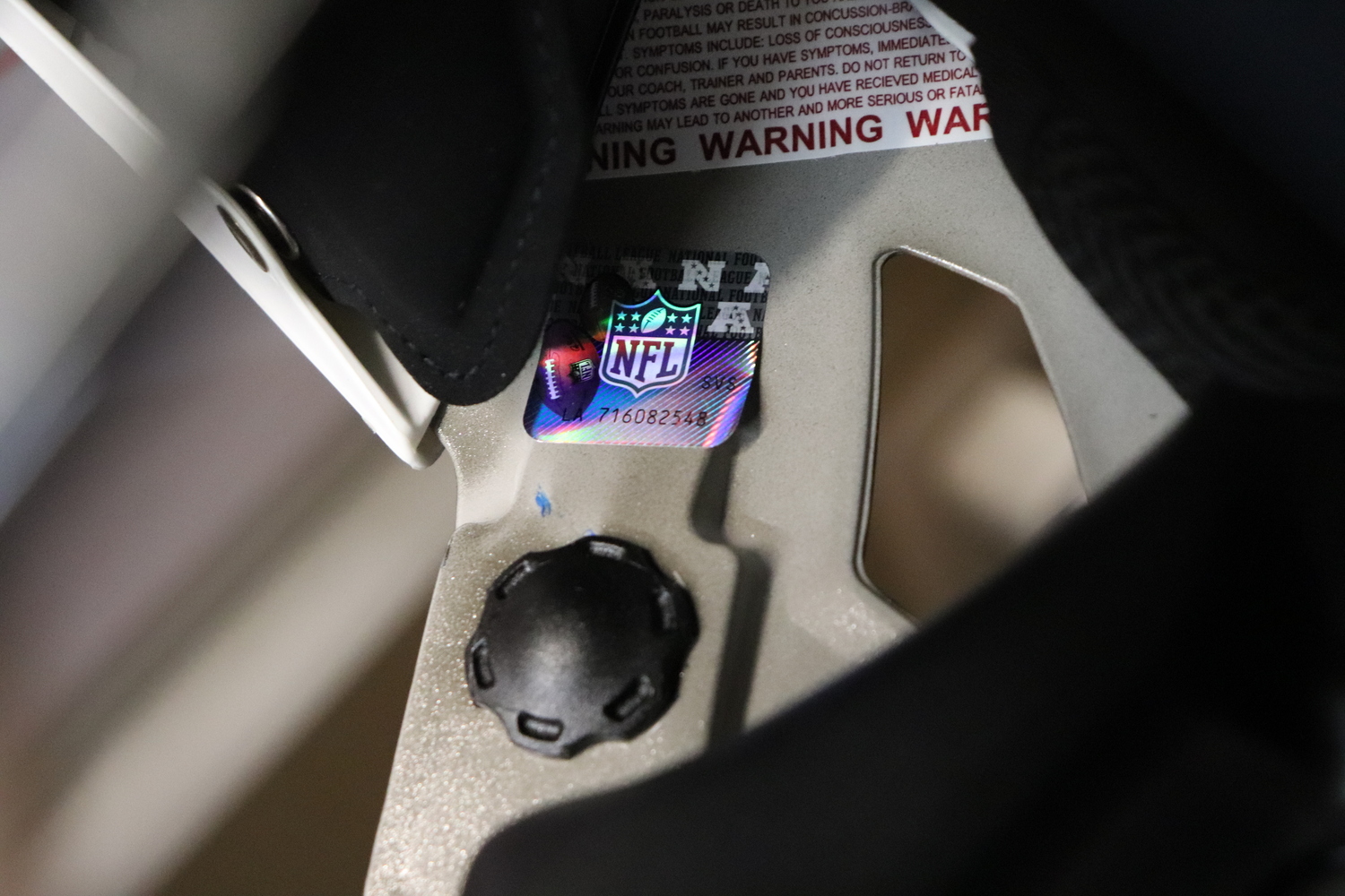 • NFL shield hologram present inside helmet