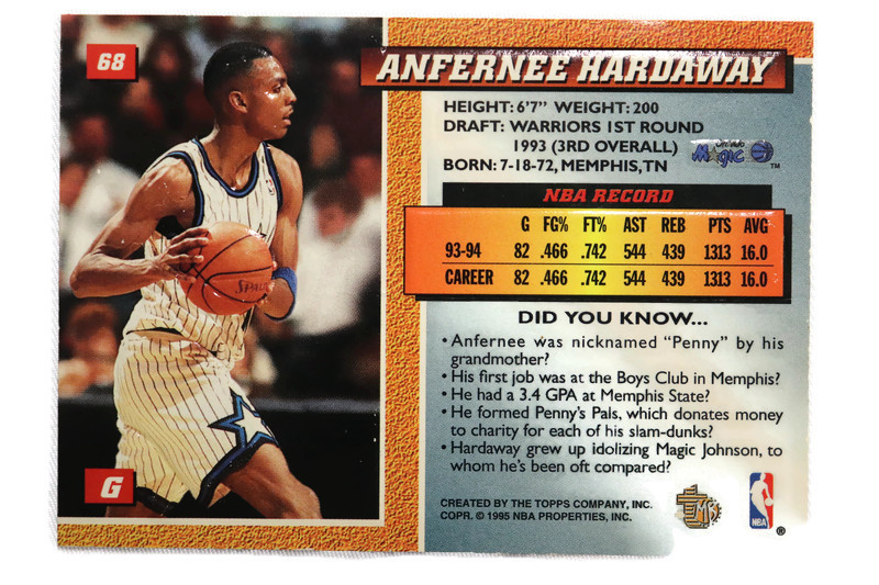 Offered here is a 1995 Topps Embossed “Golden Idols” #68 card featuring Anfernee Hardaway, one of the most electrifying stars of the 1990s with the Orlando Magic.