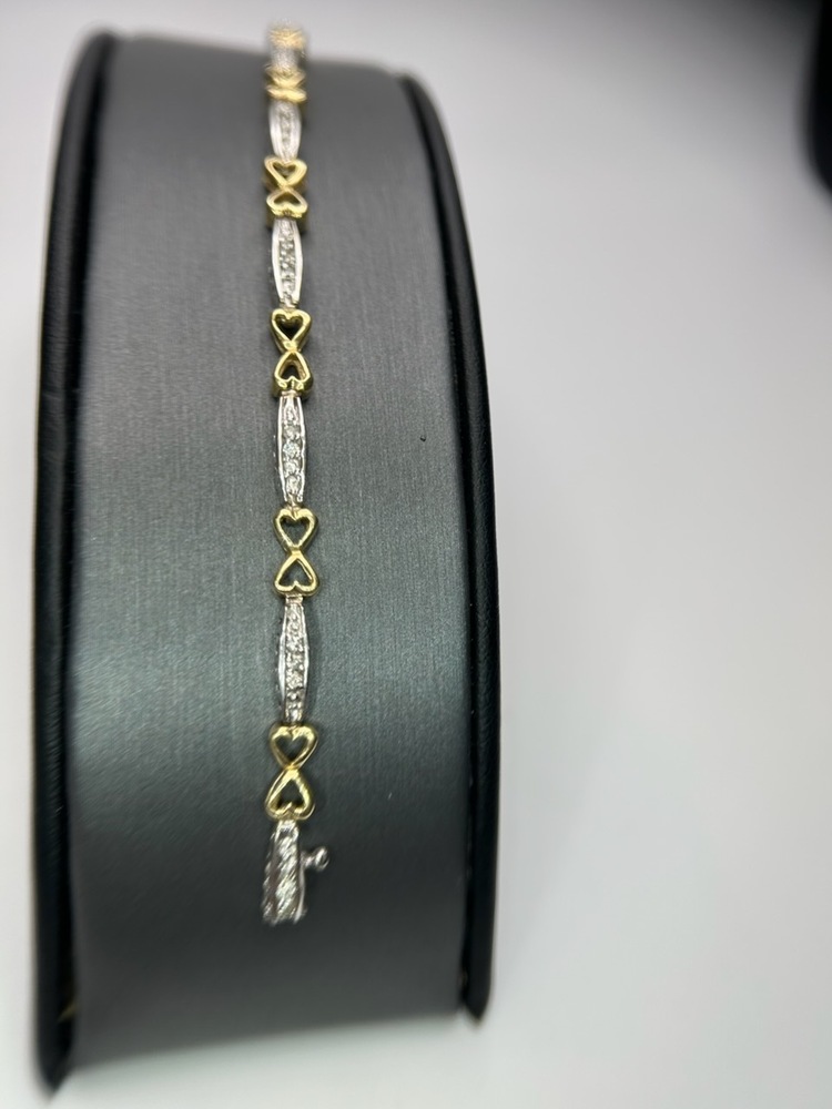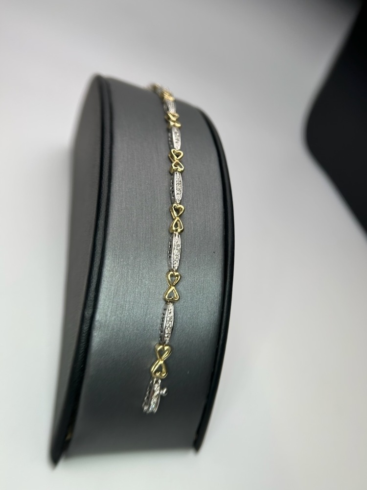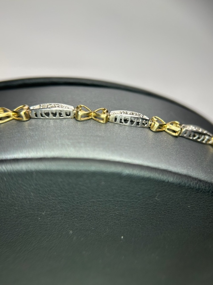 LADIES TENNIS BRACELET TWO-TONED 10 KT GOLD 5.80g .50 CTW  DOUBLE HEART LINKS WITH I LOVE YOU ON THE SIDE. 7 INHCES LONG.