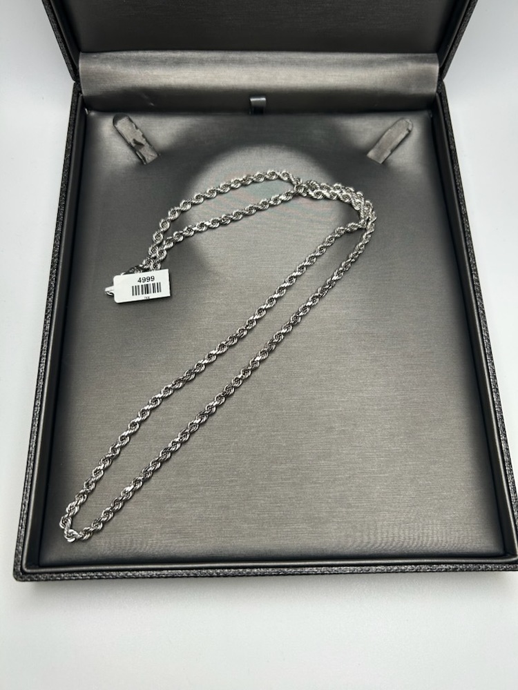 10k white gold, weighing 28.10g, 24 inches long, rope link.