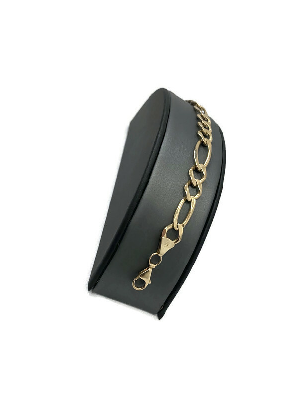 This 10k gold YG fig bracelet, weighing 17.60g, exudes elegance and style. Perfect for any occasion, its timeless design can effortlessly enhance any outfit